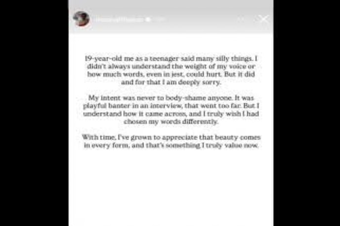 She wrote, ‘At the age of 19, I said many stupid things. I didn’t always understand the weight of my voice or how much words can hurt, even in jest. But it happened and I am very sorry for that. My intention was never to body shame anyone. It was a funny conversation in an interview that went too far. But I understand how it happened and wish I had chosen my words differently. With time, I have started to understand that beauty exists in every form and I appreciate it now.’