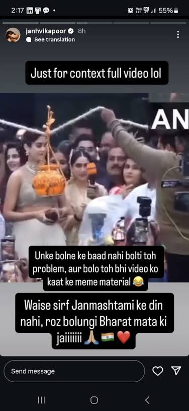 Let us tell you that Janhvi Kapoor shared a small clip of the Dahi Handi program on her official Instagram story when she was asked to break the handi. In the video going viral on the internet, the slogan ‘Bharat Mata Ki Jai’ was heard just before she broke the handi. In the caption, the actress wrote, ‘Just for reference. If I did not speak after he spoke, it would have been a problem. And even if I spoke, the video was edited as meme material.’
