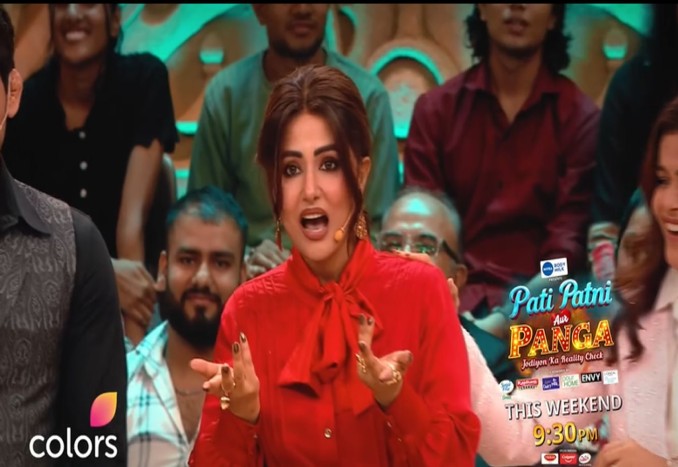 Actress Hina Khan, who is currently starring in the popular reality show Pati, Patni Aur Panga with her husband Rocky Jaiswal, recently created a laugh-out-loud moment on set. During a fun task, Hina accidentally bit comedian Sudesh Lahiri’s hand, mistaking him for her husband! The comical incident took place during a segment where the wives had to identify their husbands by touching their hands and feet while blindfolded.