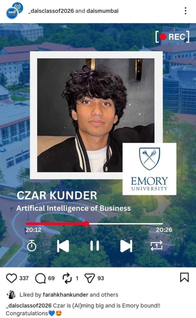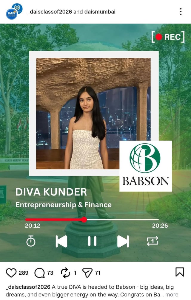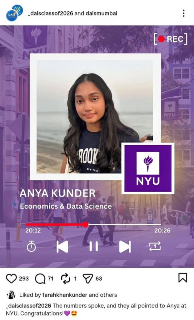 Her three children, Diva, Anya and Czar have completed their schooling at Dhirubhai Ambani International School (DAIS), Mumbai, and are now preparing to move abroad for further studies. DAIS Mumbai also shared a special post on Instagram, wishing the trio the best for their future and revealing details about their chosen universities and fields of study. According to the school’s post, Diva Kunder will be enrolling at Babson College, a prestigious private business school in Wellesley, Massachusetts, USA and will study Entrepreneurship and Finance.