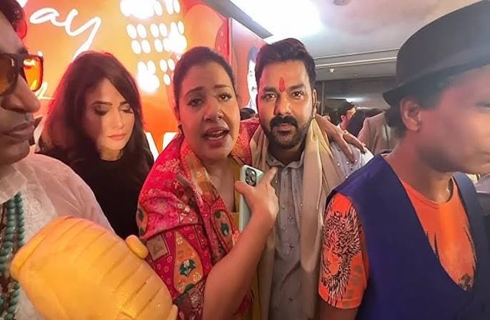 Viewers noted that the woman appeared uncomfortable during the incident but remained silent, possibly due to the crowd and public setting. The clip has since been widely shared, drawing mixed reactions online. The woman seen in the viral video is being identified as Bhojpuri actress Mahima Singh, who has recently worked with Pawan Singh. The two were last seen together in the song Bani Laika, which is described as bold and romantic.